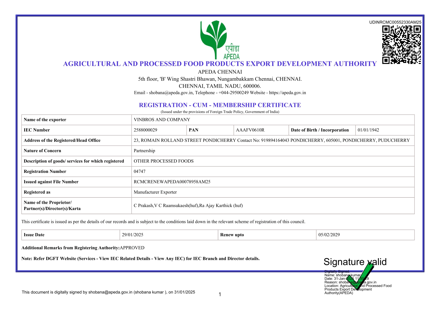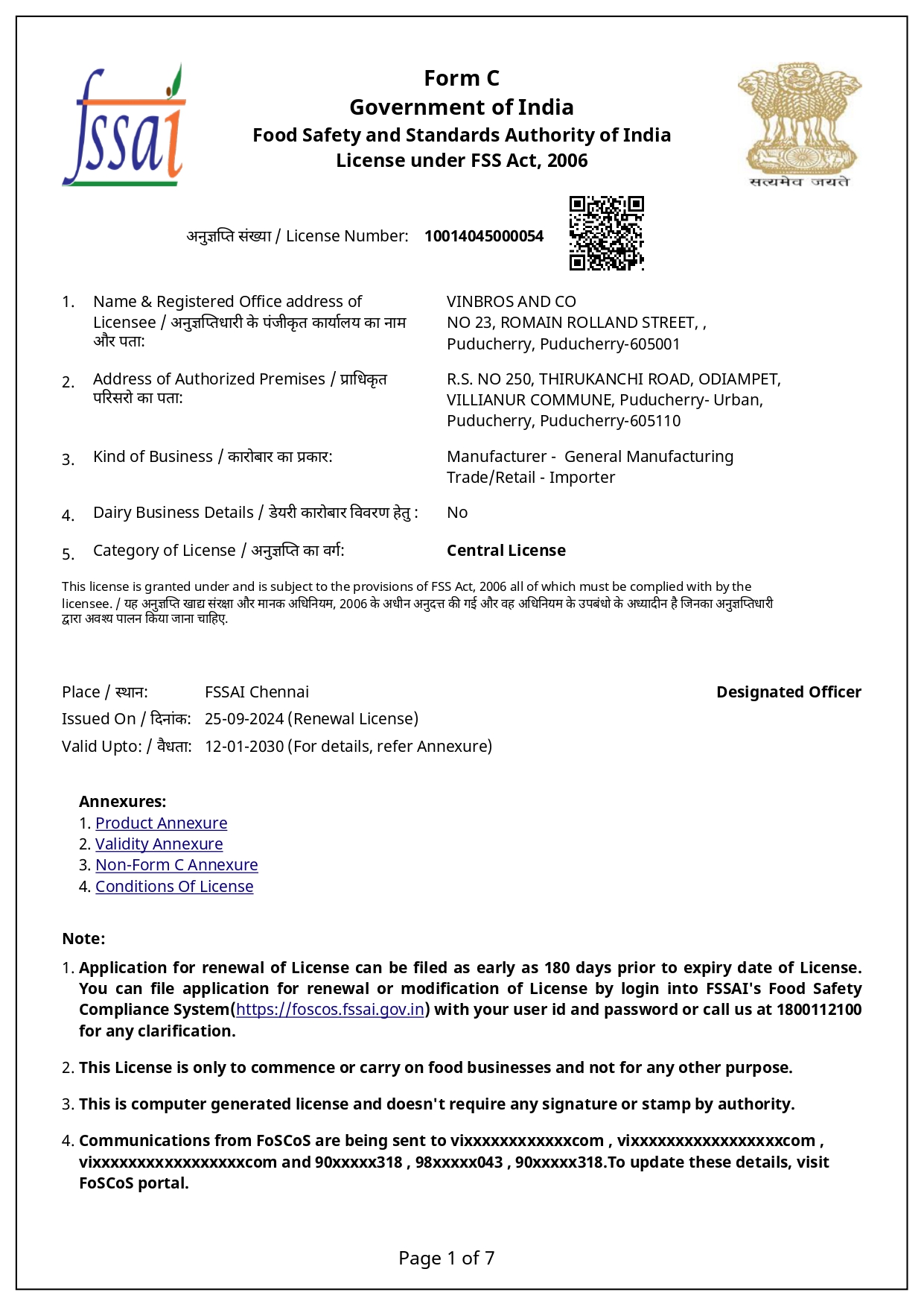 We are an ISO 9001 certified company and licensed with centrally approved FSSAI license